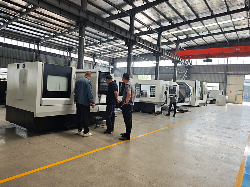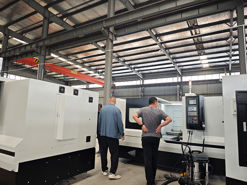 客户来厂里工作车间参观机床