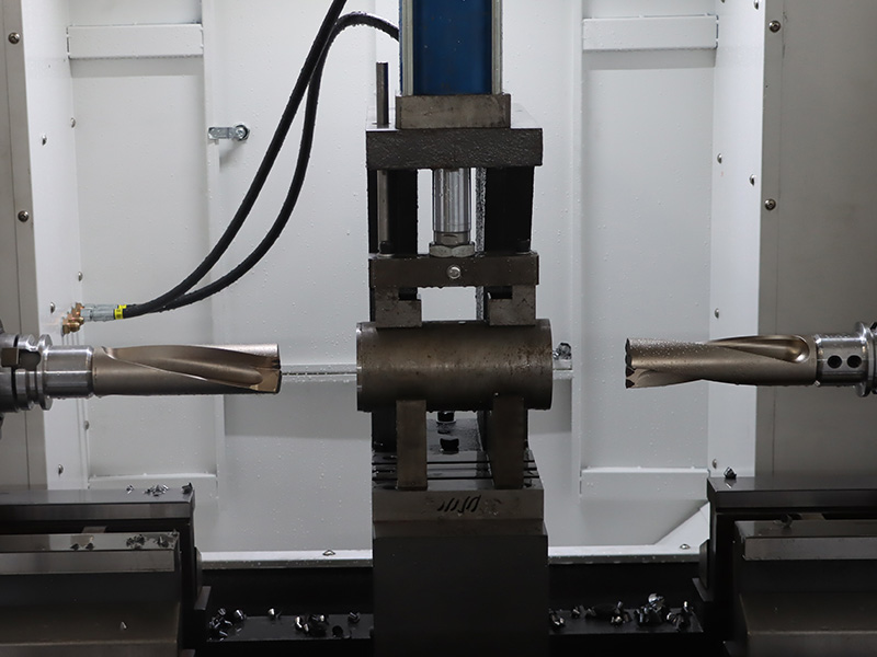 车间新款安装好的ZK500数控双刀头双面钻孔机床