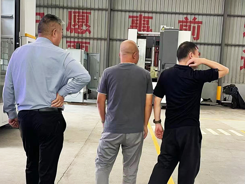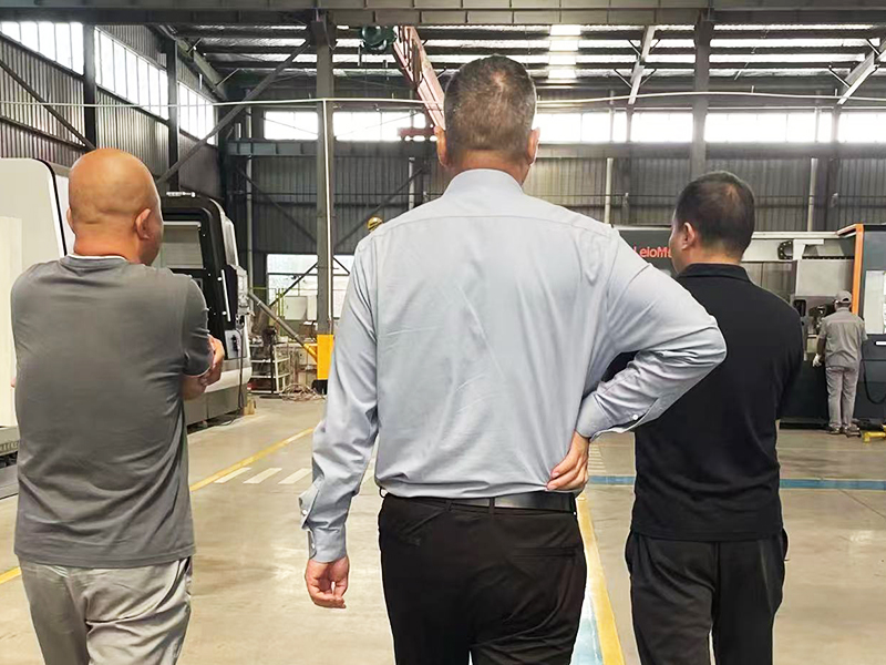 领导带领客户来生产车间参观了解机床